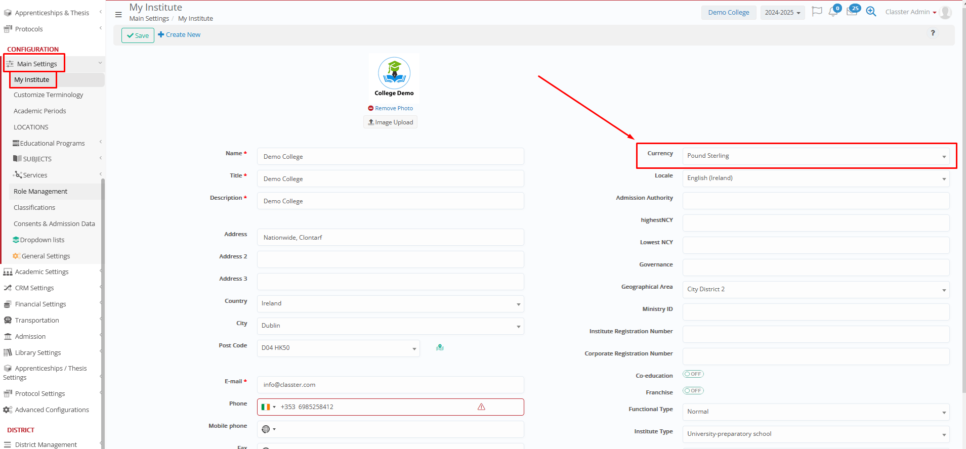 Chosen currency is used overall into the system, in financial lists, payments, transactions, reports etc.