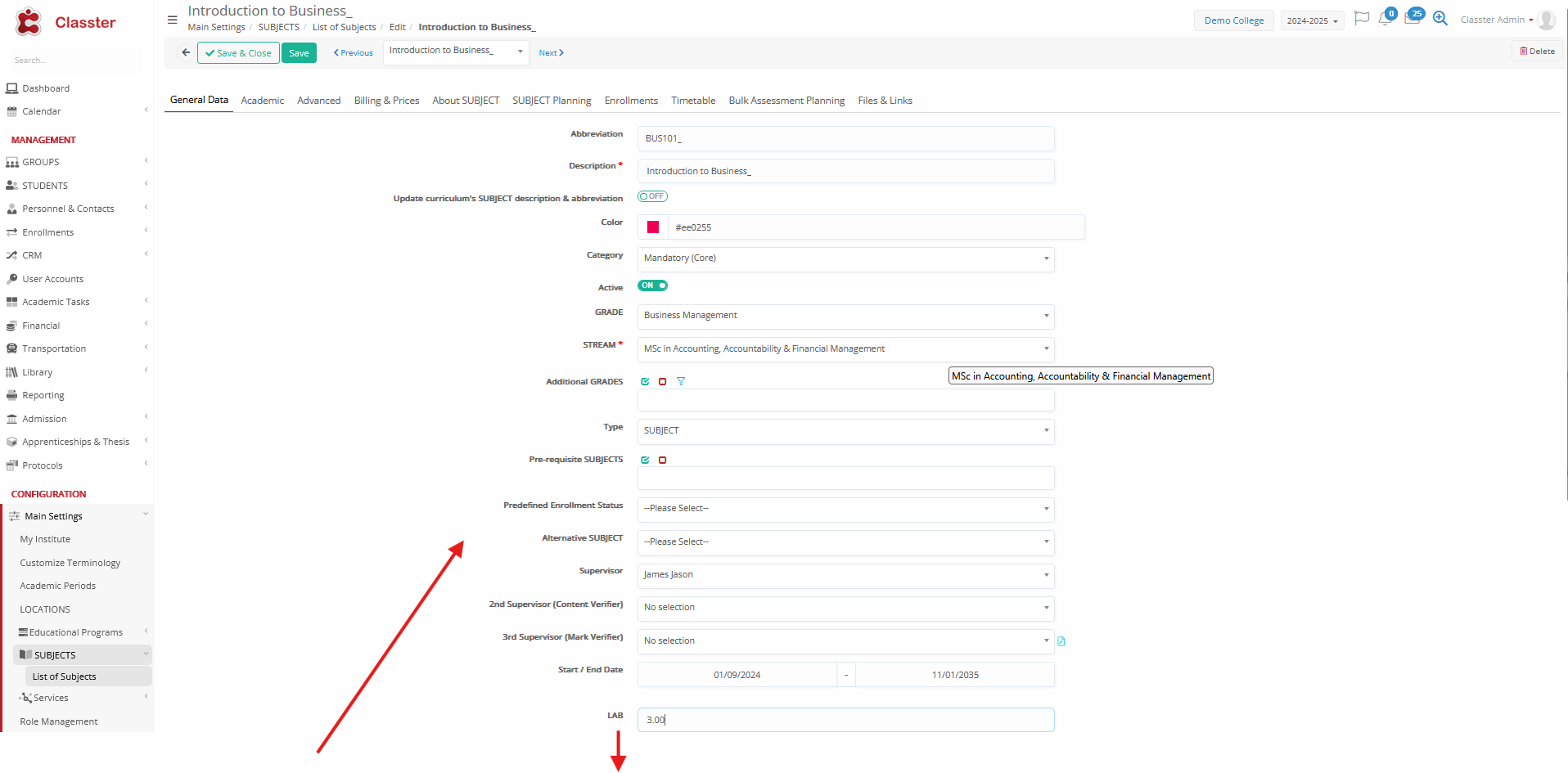 Path: Configuration > Main Settings > _Subjects_