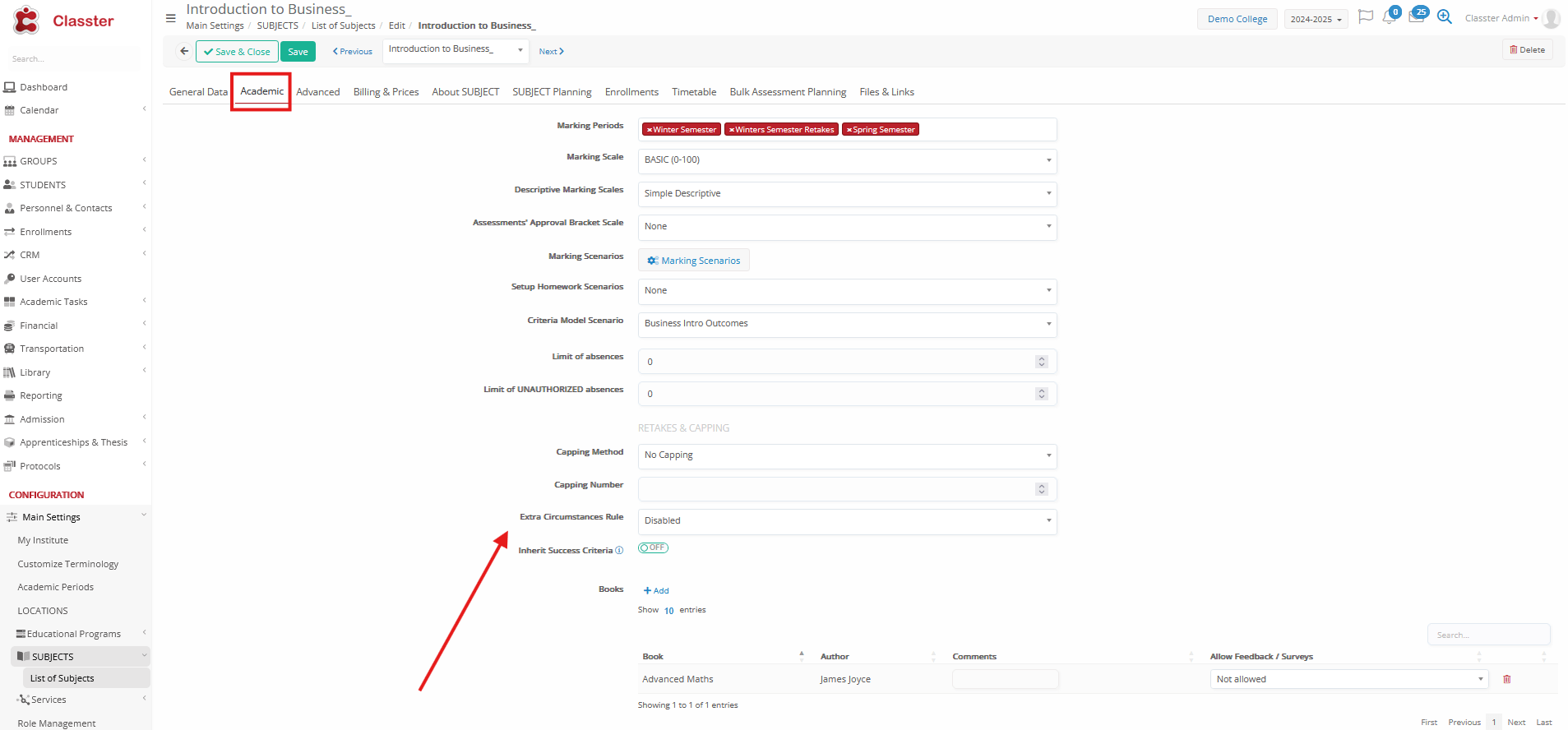 - Marking scale → the default subject marking range (e.g., ‘0-100’)