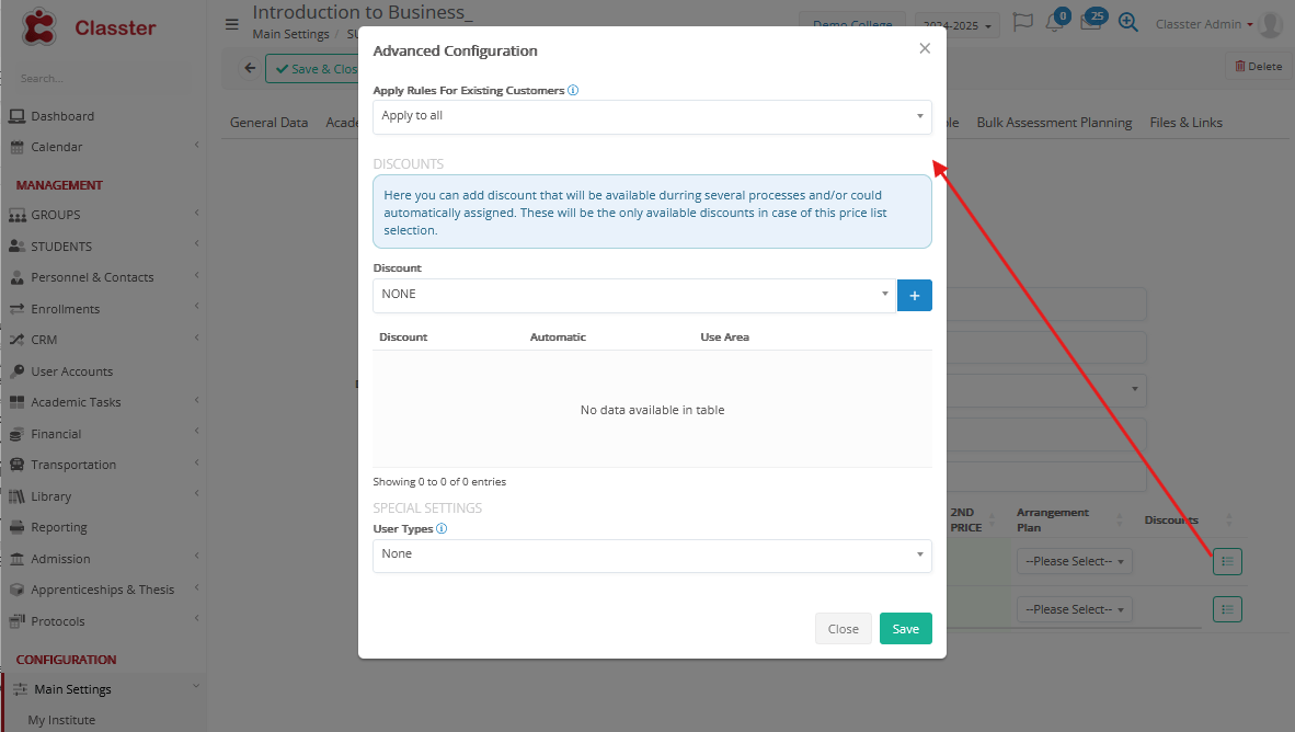 - Special Entries: The subject entity is also used in the Admission module. This option is used for special/custom Qualifications (e.g., Interviews) used in admissions-entry requirements (& qualification points). For more details about the Internships, please refer to the corresponding manual.