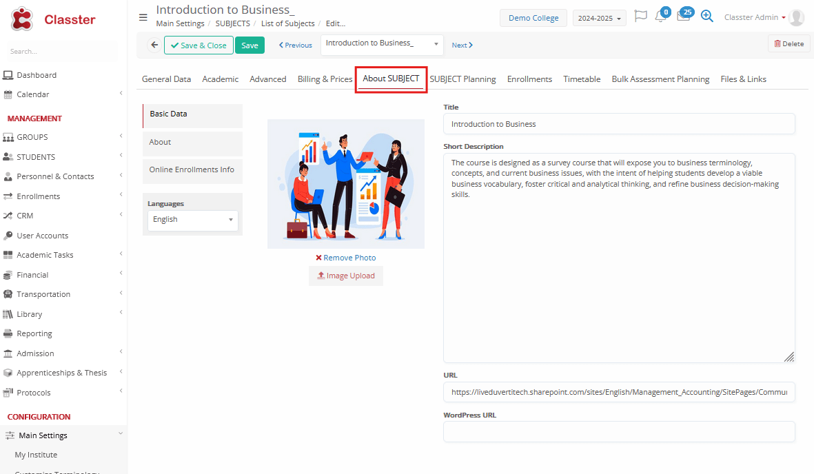 - About _Subject_Tab_ (extra subject data such as title translated per language, subject URL, photo, extra rich text information & online enrollments info)