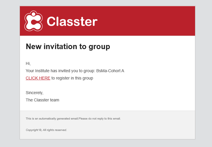 - The students receive an invitation e-mail with a link to sign up and enroll in the group.