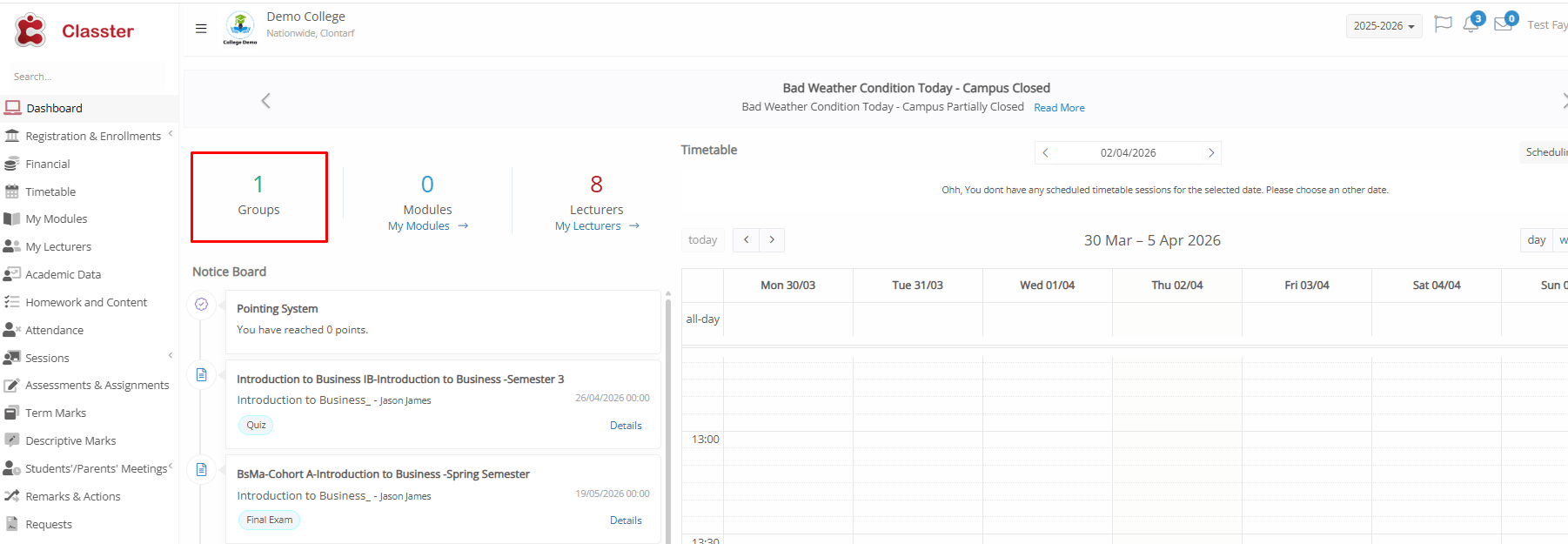- Calendar: View all Group-related events in a calendar format (Timetable, Assessments, Events)