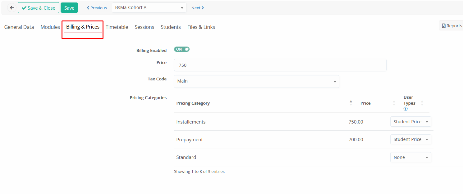 Billing & Prices