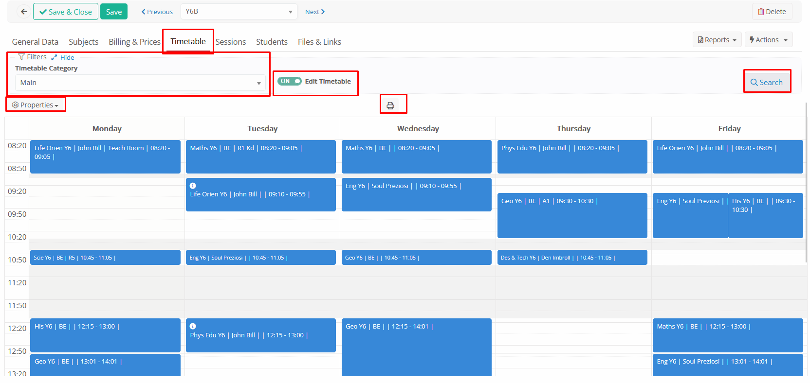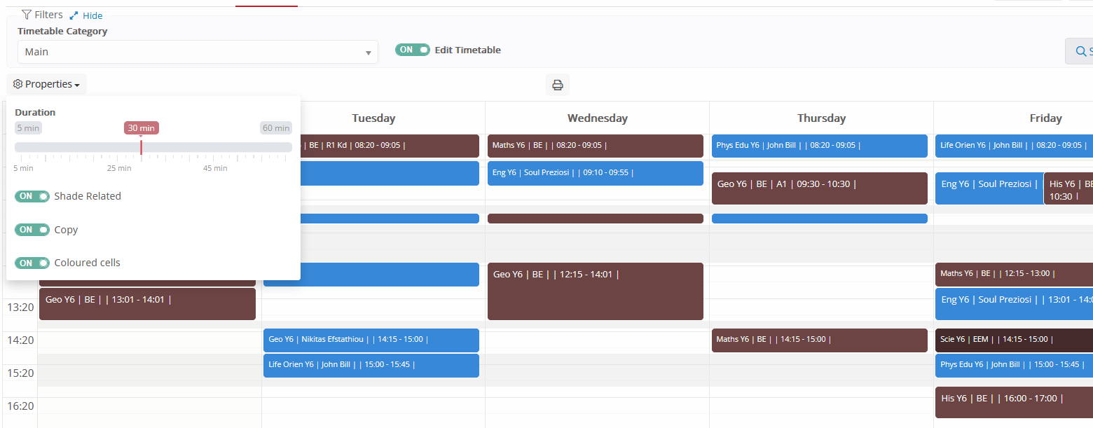 - External Timetable Code: Identifier for integration with external timetable systems such as the ASC timetable.