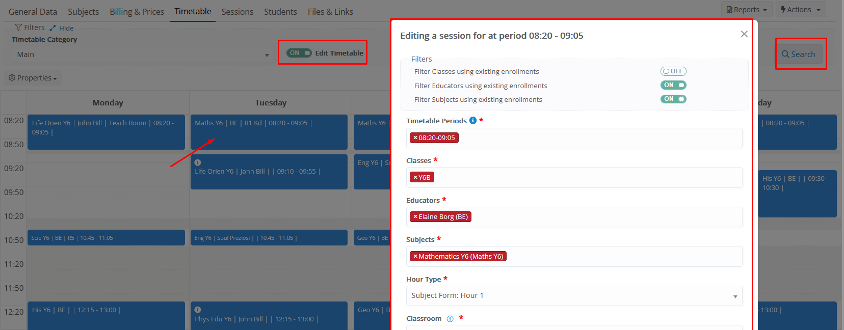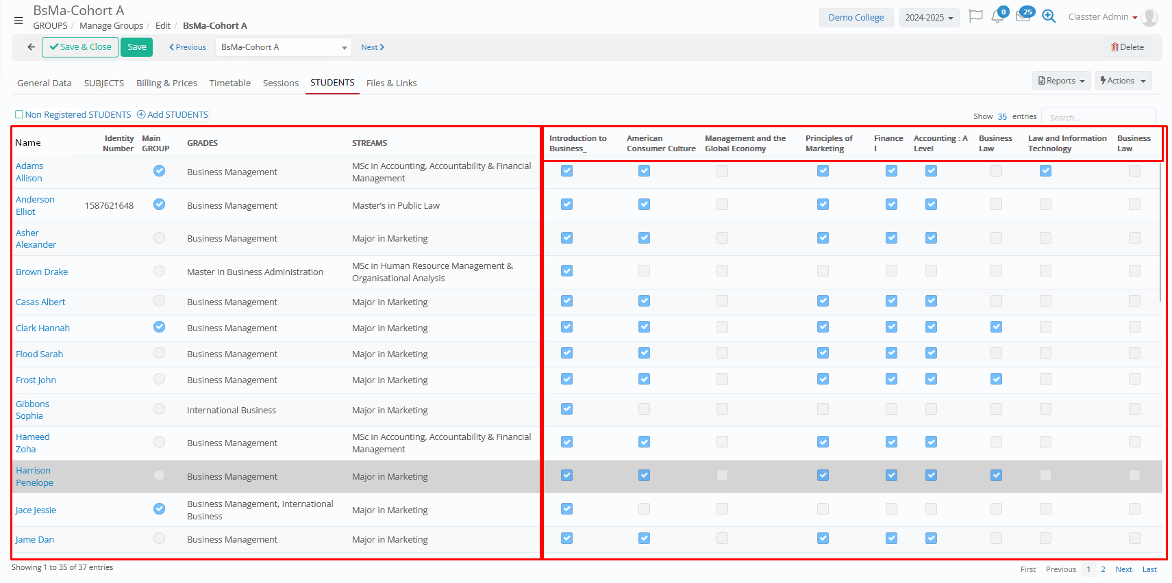 - Academic Features: Most of the academic features are based on the Student/Teacher connection to Groups and Subjects. Timetables, sessions, marking, assessments, etc. are for each group-subject combination.