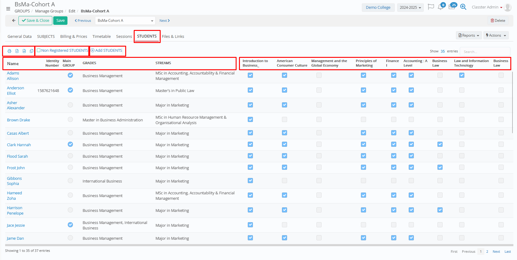 - Main Group Toggle: The allocation is considered as ‘main’/default. Used to core subjects of the group.