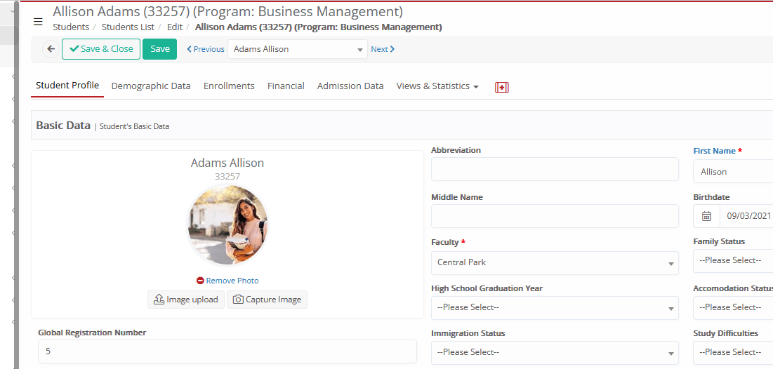 - Registration Status: Indicates whether the student’s registration is complete or pending.