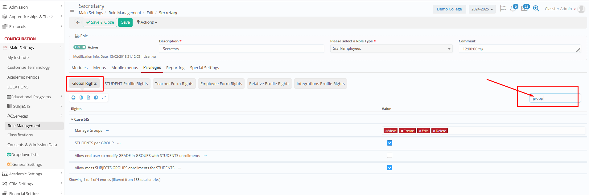 Administrators can control who can manage Groups and which actions they can perform by configuring Roles & Rights.