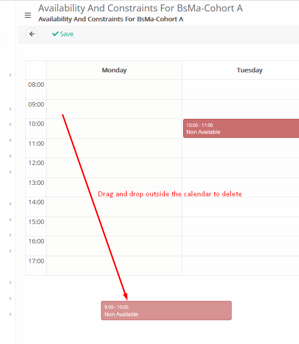 Please note that to delete an entry, you need to drag and drop the slot outside the calendar/table: