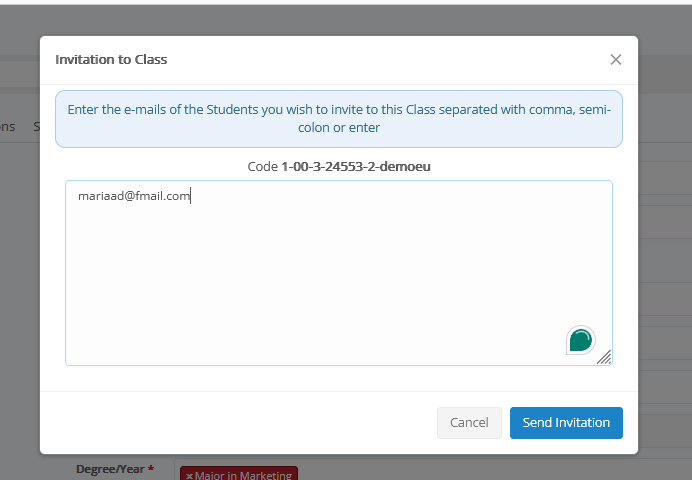 - Back-office User invites new students by entering their e-mail addresses.