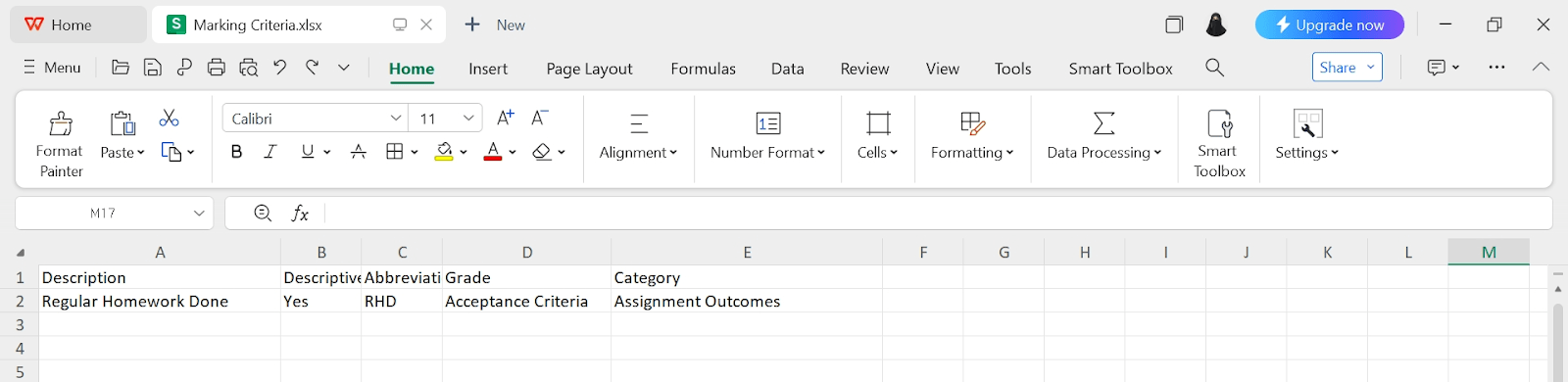 Here’s how the uploaded Marking Criteria List file looks like.