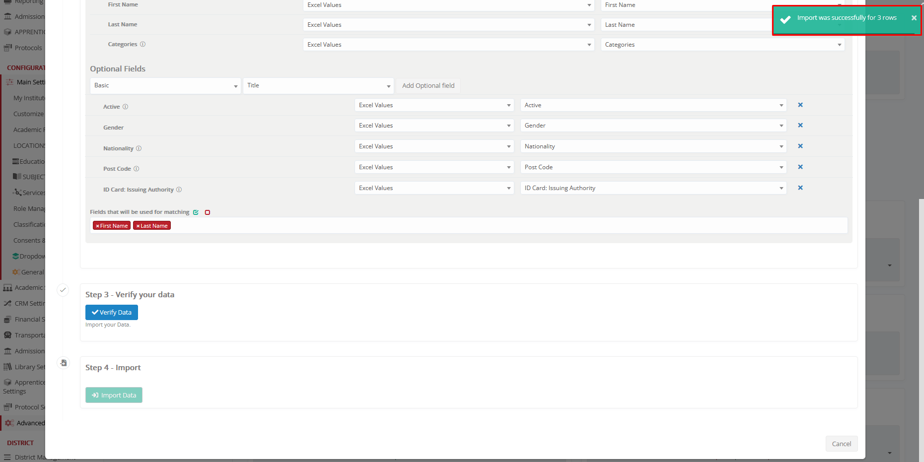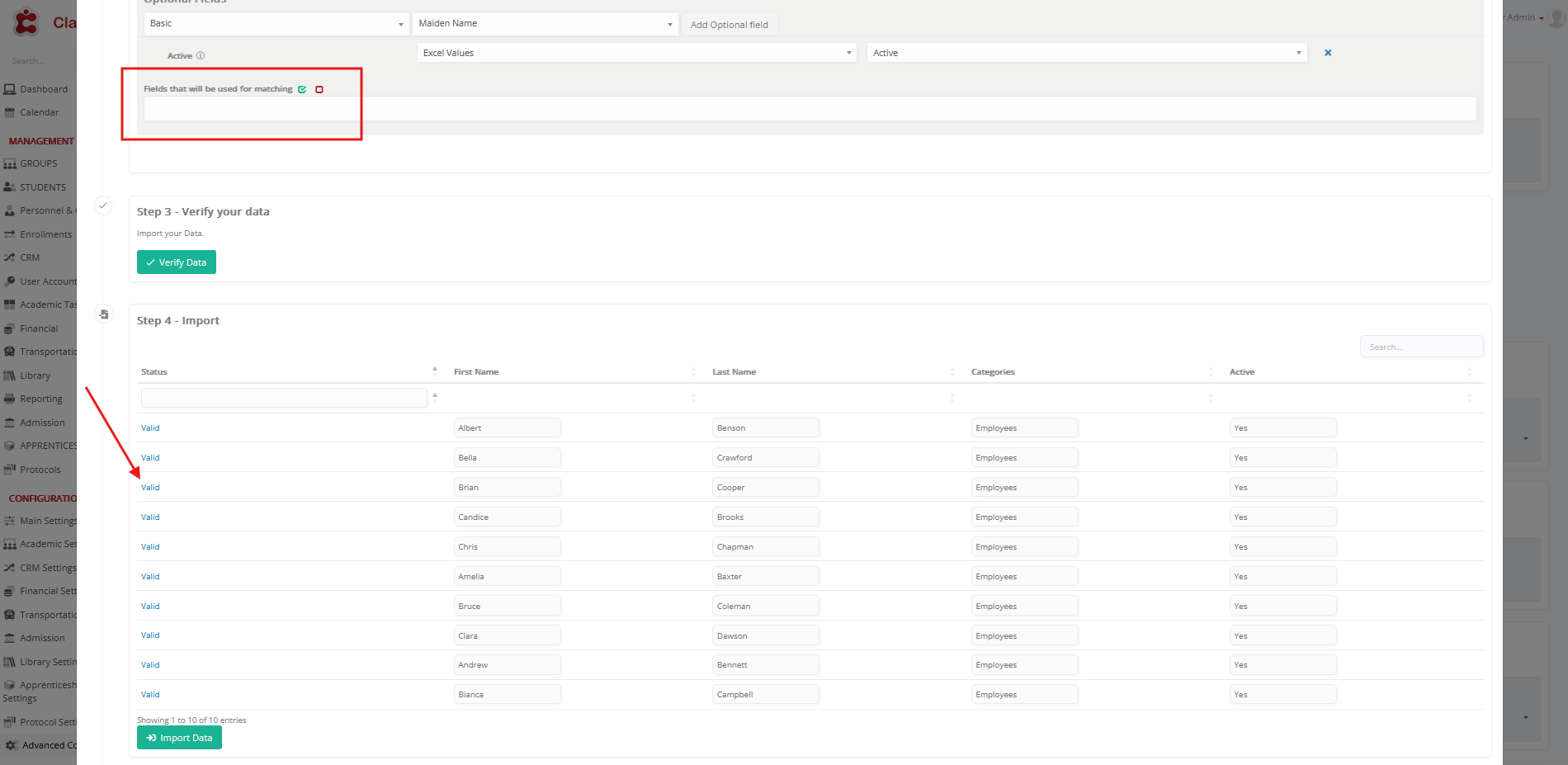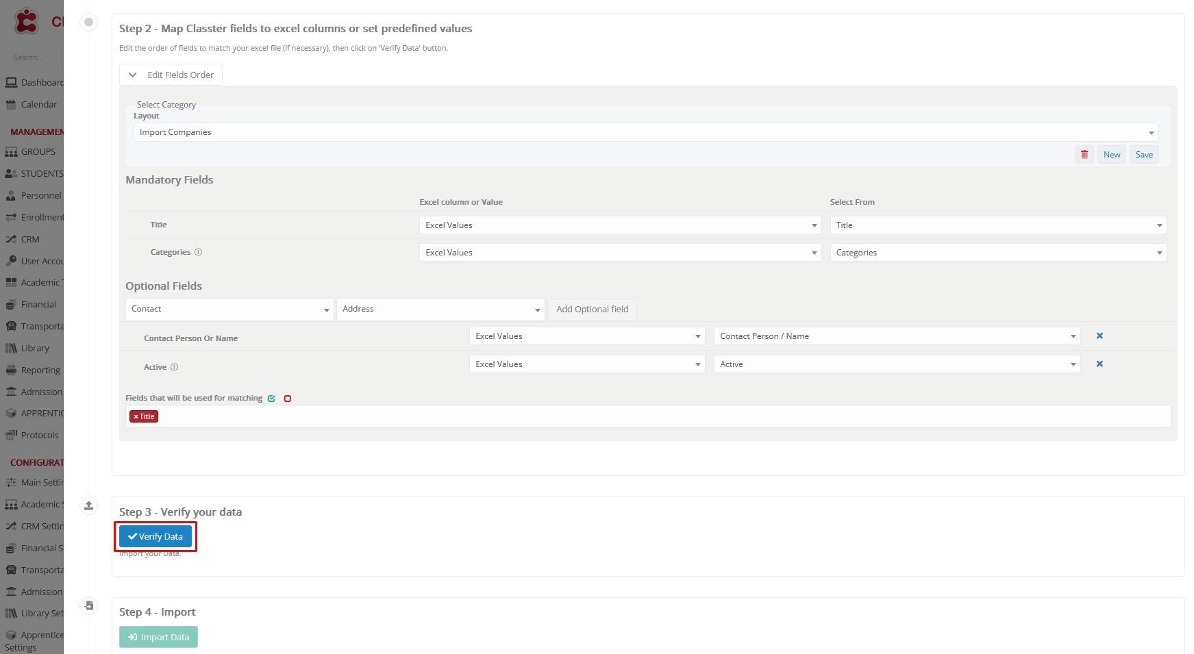 Once field mapping is completed, click Verify Data to validate the uploaded records.