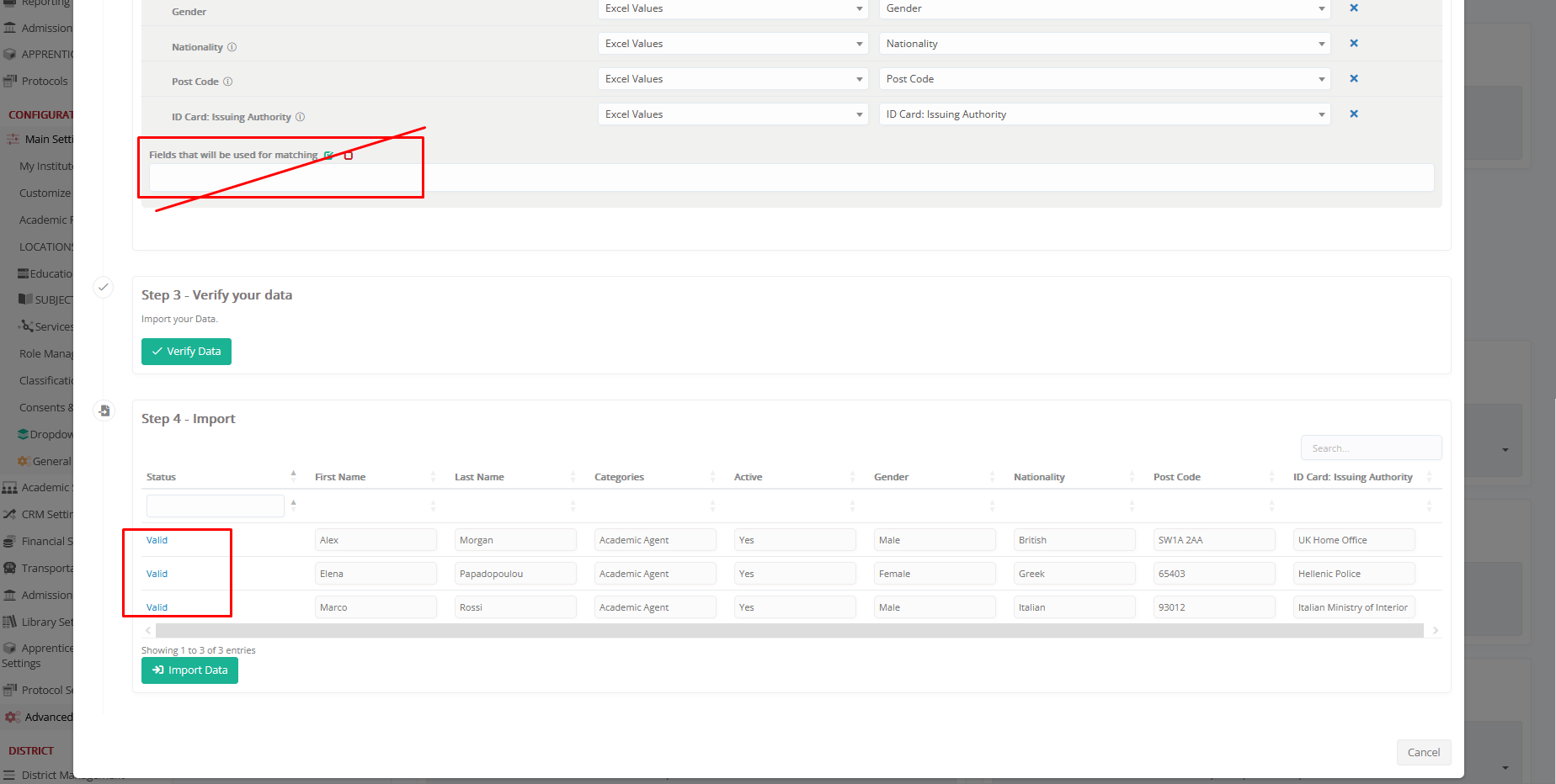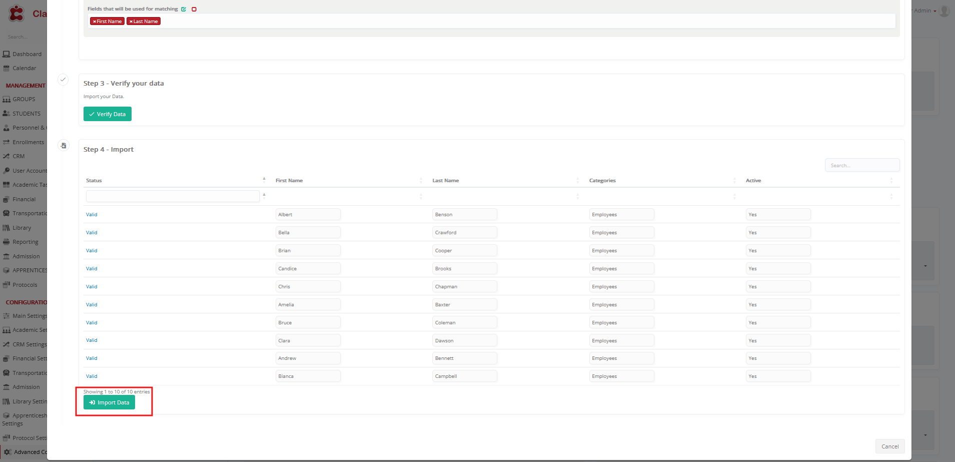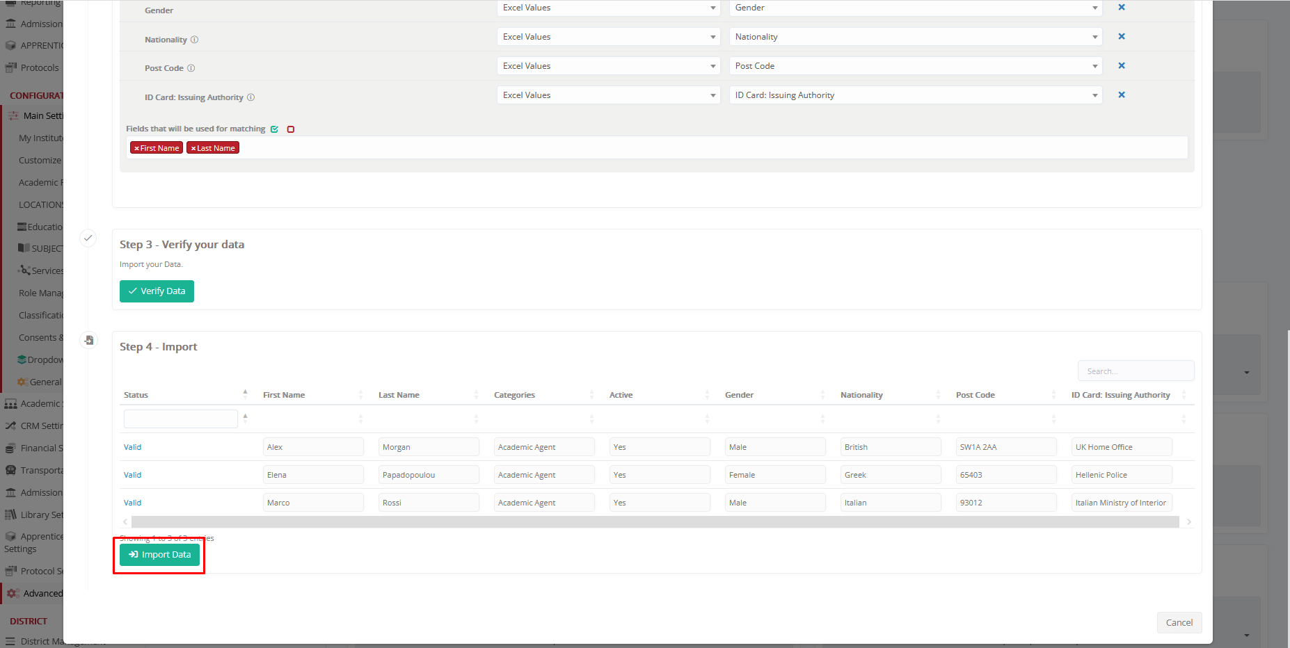 Once field mapping is completed, click Verify Data to validate the uploaded records.