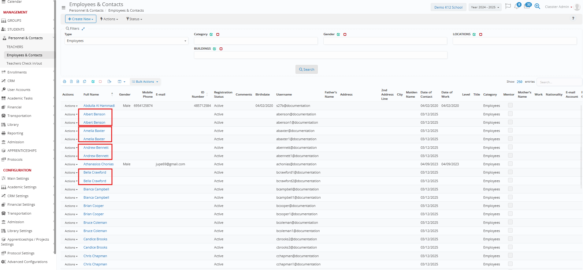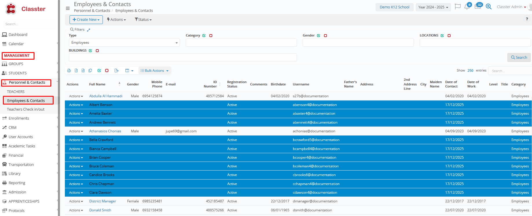 To view Imported Employees list, navigate to: MANAGEMENT > Personnel & Contacts > Employees & Contacts > Type: Employees > click Search.