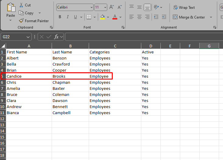 - Categories: Must be set as “Employees” as User Value or in Excel file, categorizing the record correctly.