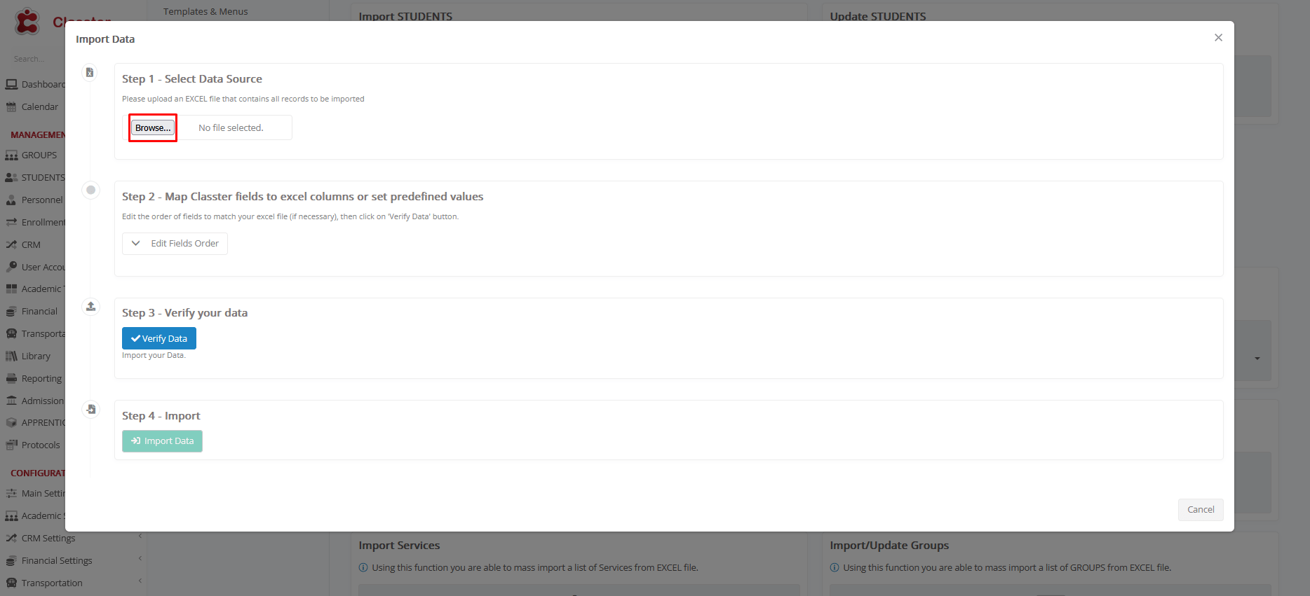Classter will check for missing mandatory fields, invalid formats, or duplicate entries.