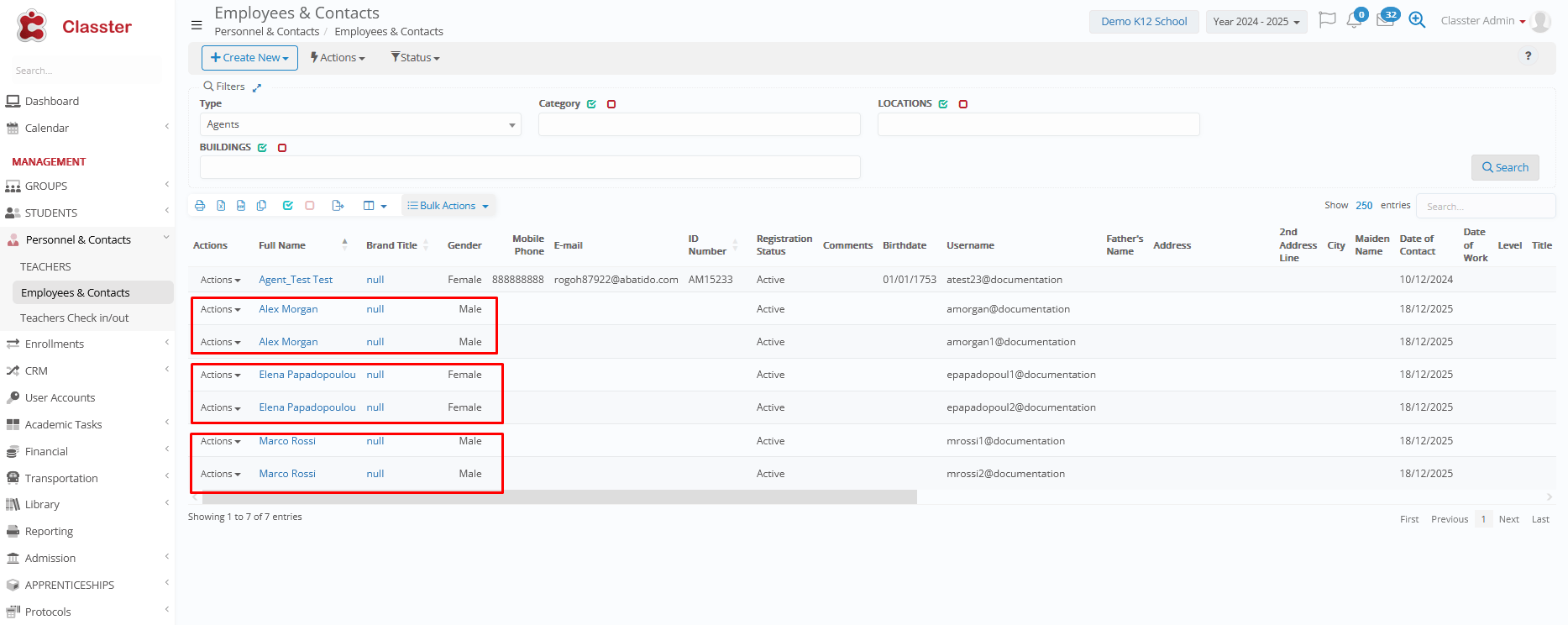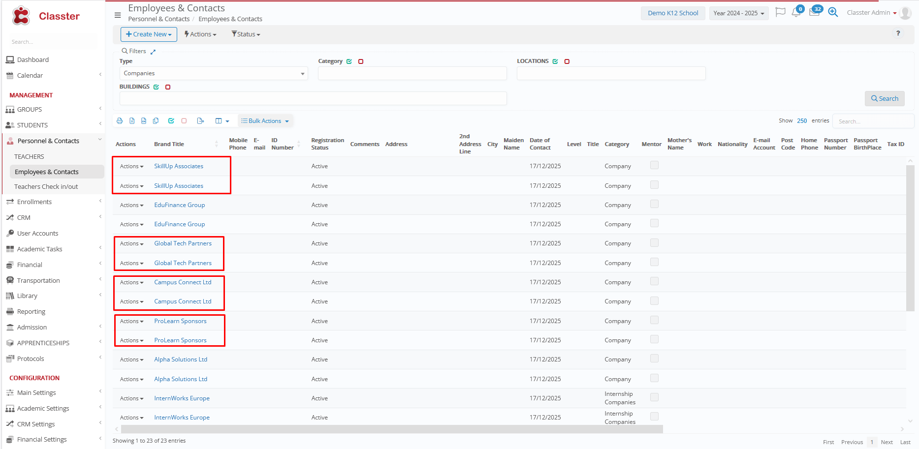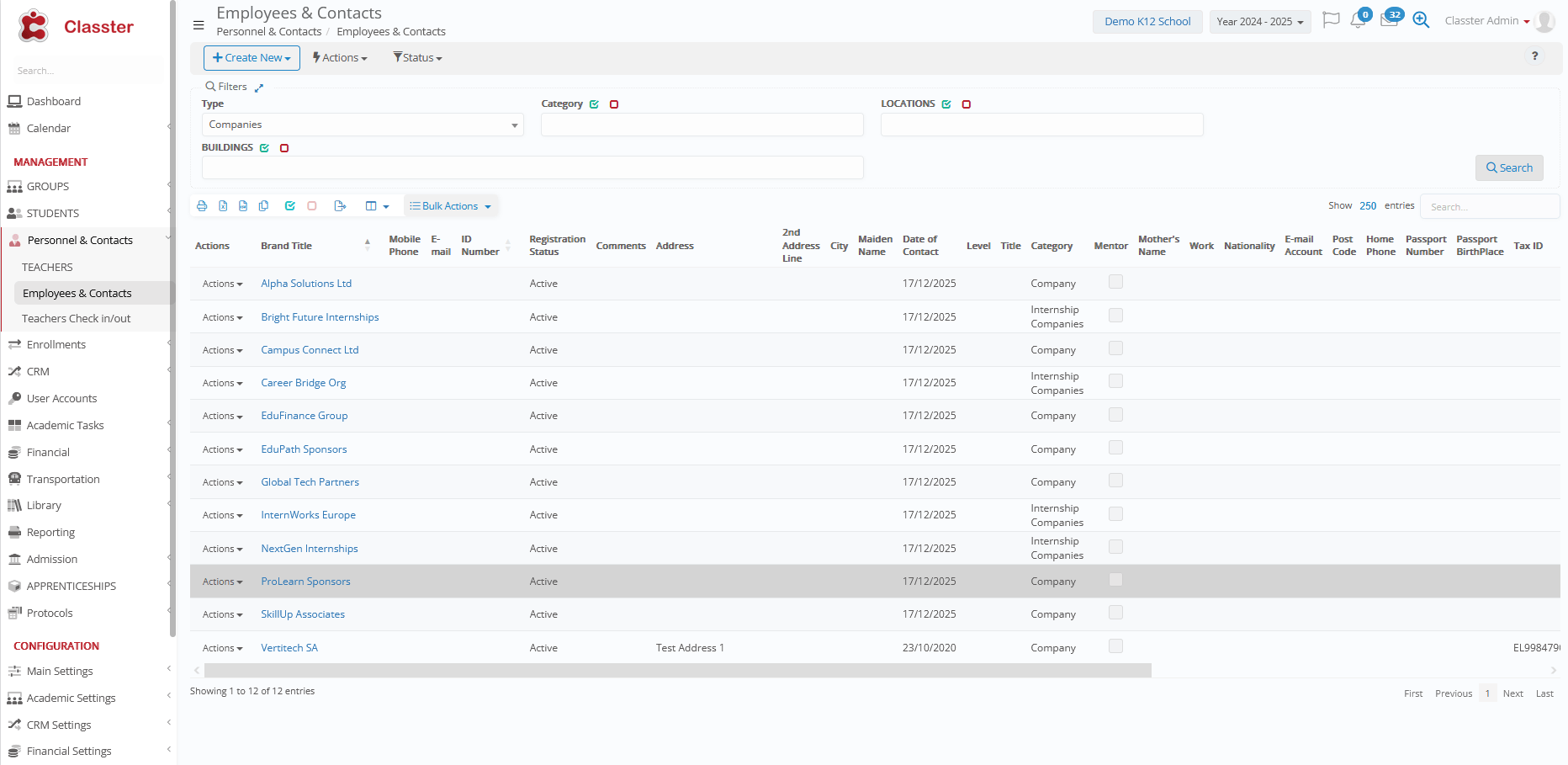 By following these steps, institutions can efficiently import Employees, Companies, and Agents into Classter, ensuring accurate and smooth record management. Proper field mapping, data verification, use of matching fields, and effective error handling help minimize mistakes, prevent duplicate records, and save significant administrative time through bulk import capabilities.