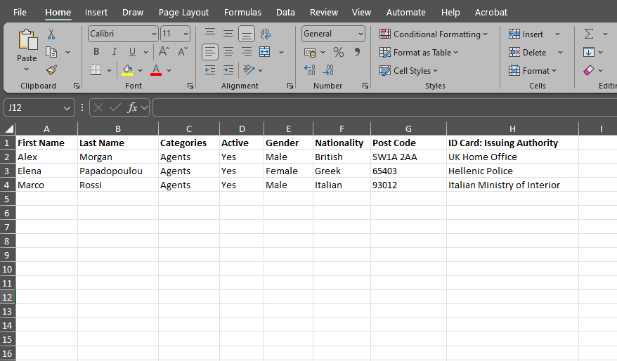 In this example, the Category is misspelled in the Excel file as “Academic Agents” (extra “s”) instead of the correct value “Academic Agent” configured in the system.