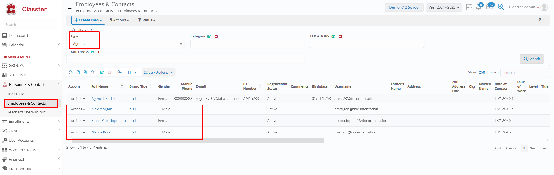 To: MANAGEMENT > Personnel & Contacts > Employees & Contacts > Type: Agents and search