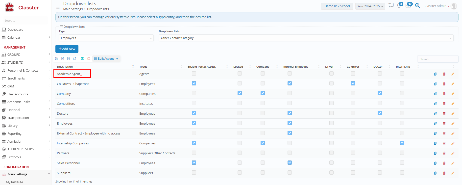 Categories in Classter include a User Type property, which defines the standard system behavior (e.g. Company, Agent, Employee). Ensure that the Category used during the import belongs to the Agent User Type; otherwise, the import will fail validation.