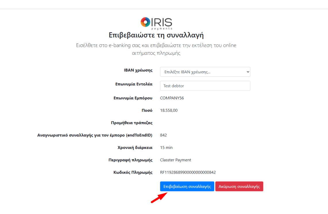 Custom Name (optional): custom name for IRIS payments, for the end users’ Portal