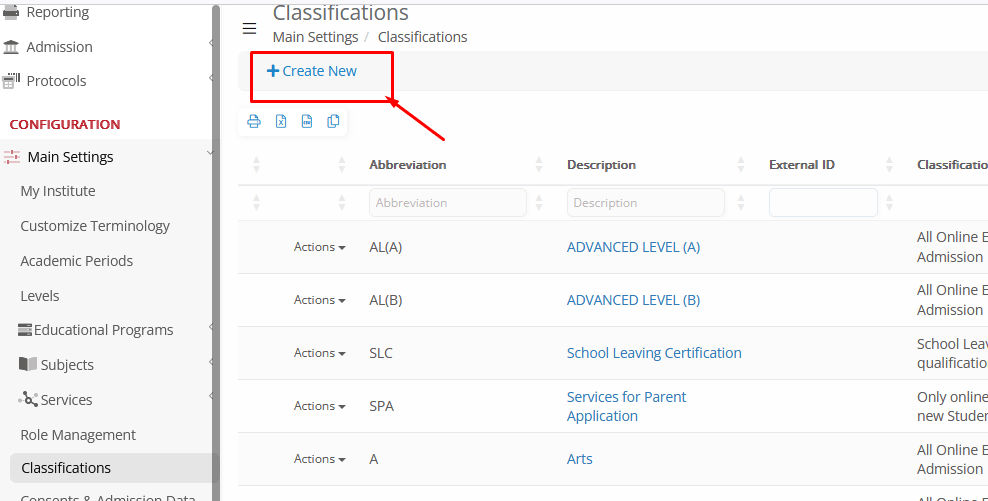 - Create a new classification using the ‘+Create New’ option.