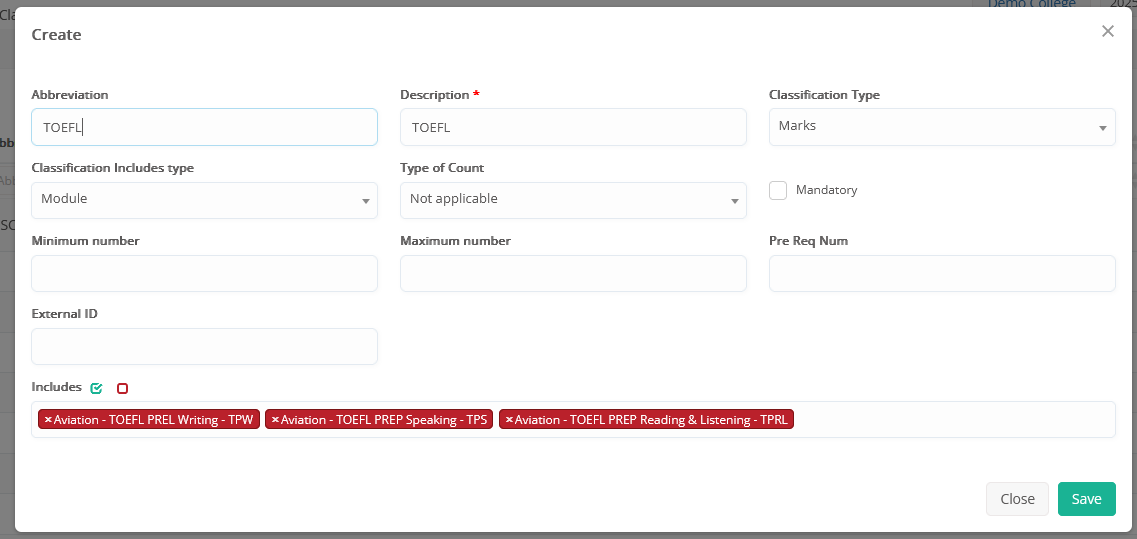 Note: Classifications for _Subjects_ enrollments are usually used in K-12/Language centers and other types, except from ‘College’ mode, since in Higher Education, the subjects’ enrollments are normally done based on the ‘Curriculum ‘ structures.