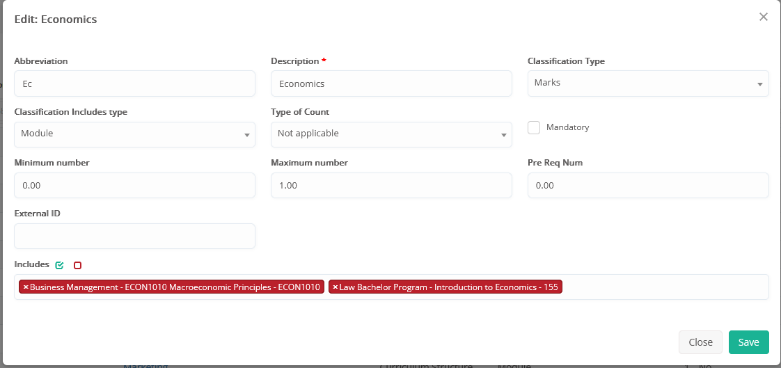- Classification for marking purposes, grouping 3 subjects into one, to be used in Annual Results Models/marks & credits calculations, as well as in Marks Report.