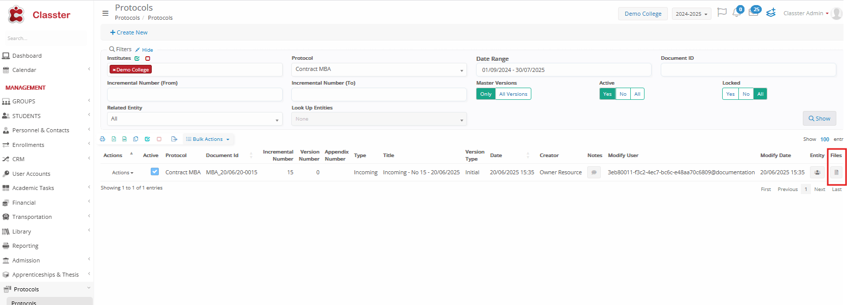 After completing these steps, you fully configure your Classter environment to manage signed documents with protocol tracking, ensuring regulatory compliance, secure storage, and efficient workflows across departments.