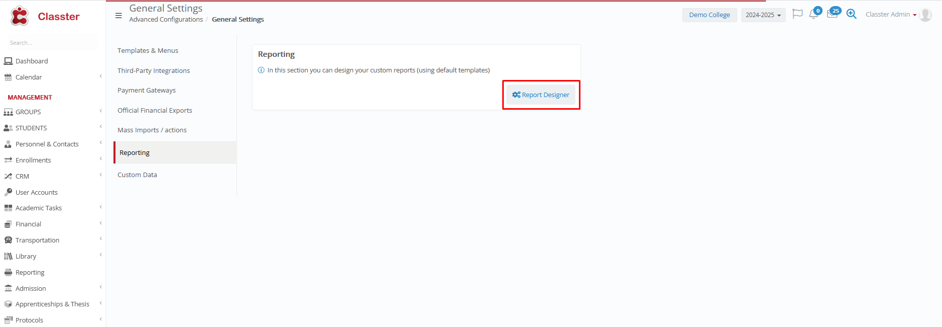 (Note: These custom reports/templates are usually prepared for you by Classter staff.)
