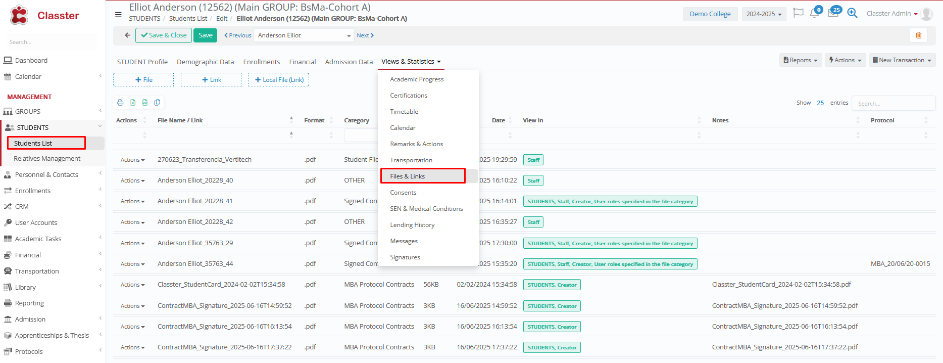 - If you already have a preformatted contract in Word or PDF, you can upload it directly to a student’s file and send it for signing.