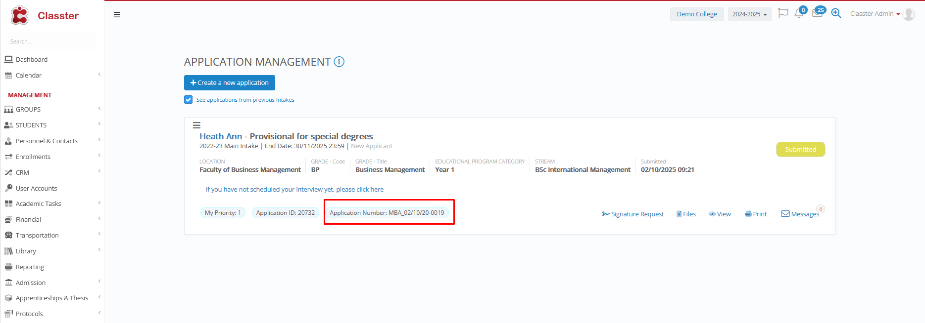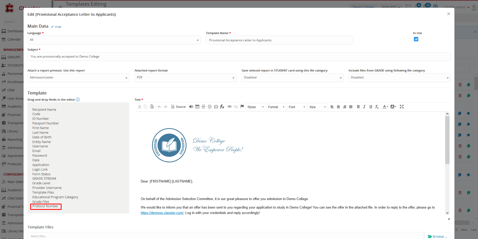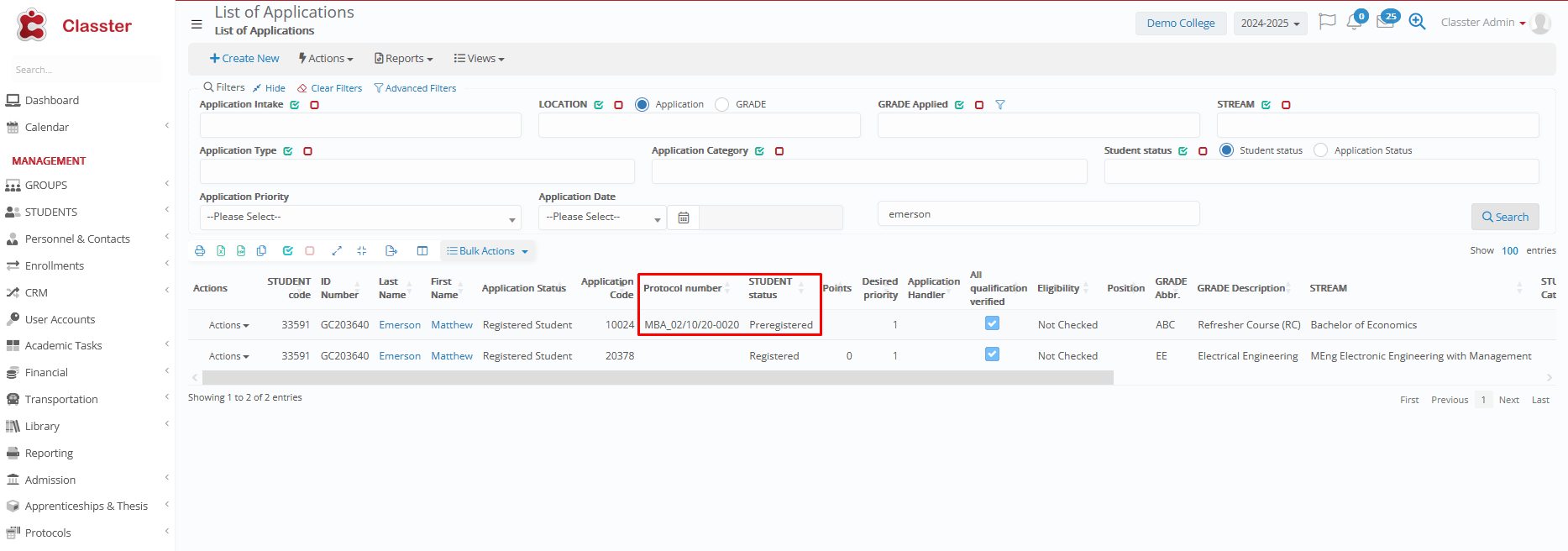 Classter lets you use the Protocols Module for application tracking. Each student application can get a unique protocol number based on your rules. This makes applications official, traceable entries—even without documents.