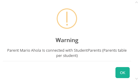 - If you try to delete a relative connected to a _Student_, the following popup window will appear (Figure 14).