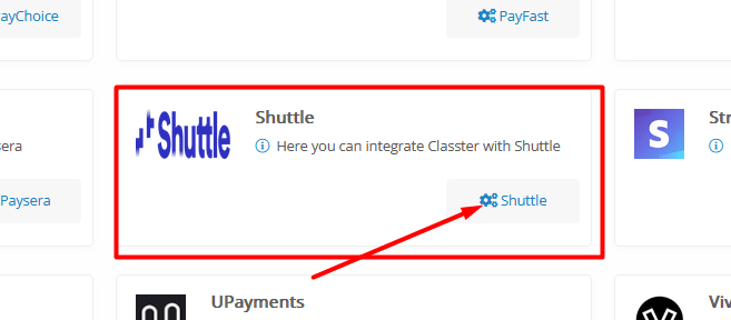 Navigate to Advanced Configurations > Payment Gateways > Shuttle.